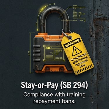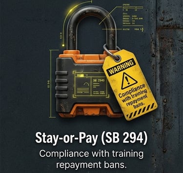 Stay-or-Pay Compliance: Navigating California SB 294, which bans agreements requiring employees to pay back training costs.